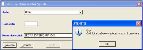 Se recomanda analiza corectitudinii codului de spital introdus deoarece odata completat nu mai poate fi editat dupa salvarea datelor.