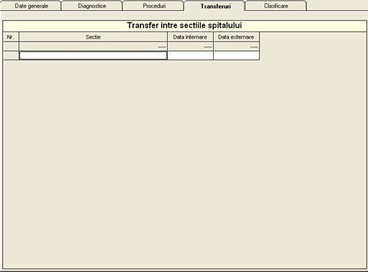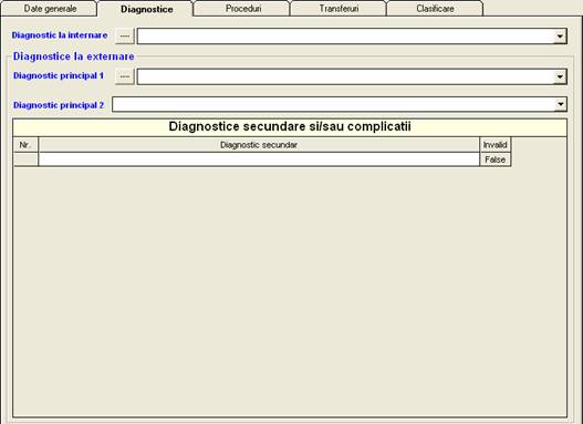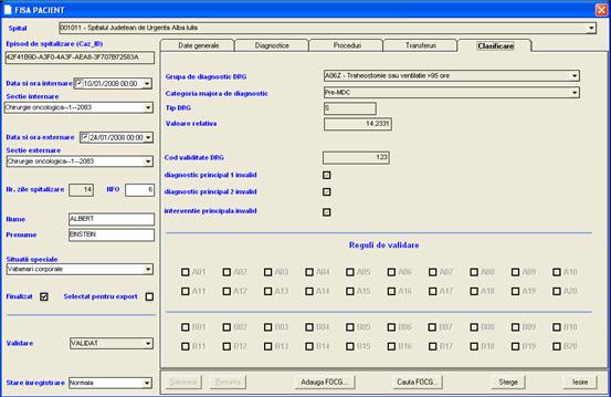 informatii specifice episodului de spitalizare, care se completeaza in partea stanga a interfetei si pacientului (sectiunea date generale:)