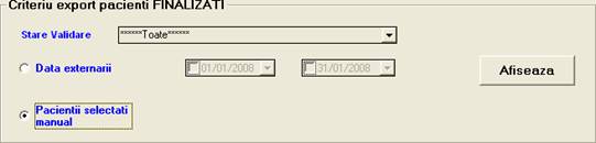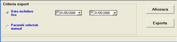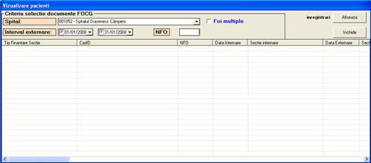 in baza criteriului format din campurile: data inchidere fisa, interval externare, pentru spitalul afisat; este modul afisat implicit la deschiderea ferestrei.