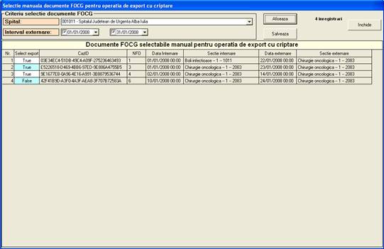 numai documentele FSZ selectate manual pentru export, situatie in care intervalul de externare este ignorat: