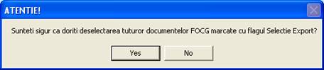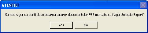 Daca utilizatorul accepta confiramarea solicitata, toate documentele FSZ din baza de date sunt marcate ca "NESELECTAT pentru export":