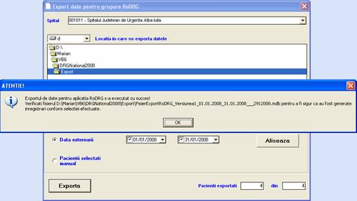 Important: pentru a se putea crea corect aceste fisiere, este obligatorie pastrarea fisierelor model: FisierExportIntern_Template.mdb, FisierExportSMDP_Template.mdb, RoDRG_Template.mdb in aceasta locatie.