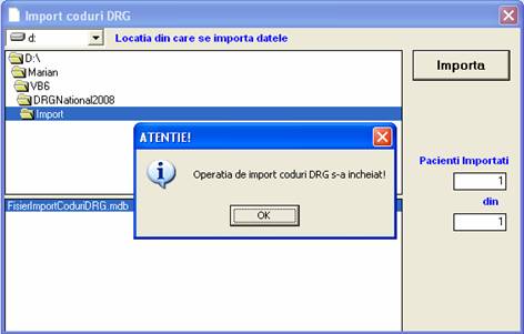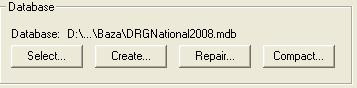 Prin intermediul butonului Select se alege baza de date DRGNational2008.mdb cautand in directorul Baza in noua cale in care a fost instalata aplicatia.