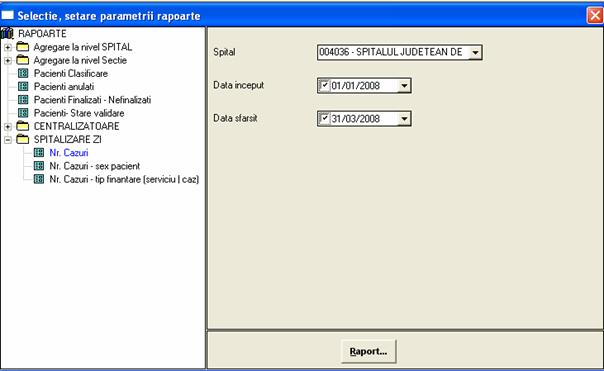 Acest raport se face pe baza numarului zilelor de spitalizare calculate in functie de data internarii si de data externarii fiecarui pacient (nu tine cont de tabelul "Transferuri"). |