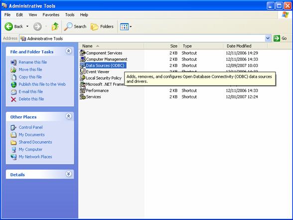se deschide aplicatia DataSources (ODBC) din Control PanelAdministrativ Tools;