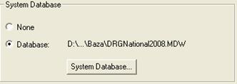 Prin intermediul butonul System database se alege fisierul DRGNational2008 .mdw ca fisier sistem