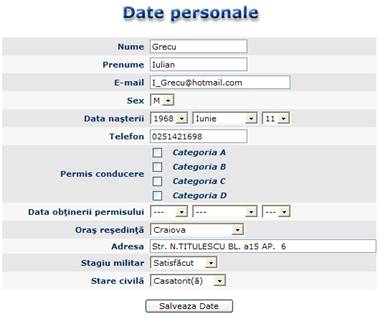Tabelele rezultate in urma gruparii atributelor in entitati, dupa functionalitate, sunt urmatoarele: