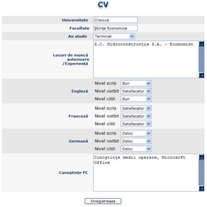 Baza informationala a aplicatiei contine urmatoarele atribute: