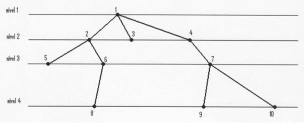 In reprezentarea grafica a unei arborescente, nodurile se deseneaza pe nivele, astfel: