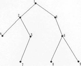 Exemplu. In arborele prezentat mai sus, frunzele sunt nodurile 4,7,8 si 9.
