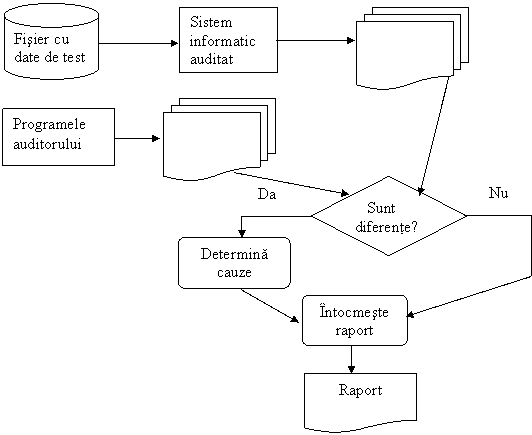 Auditorul stabileste datele de test (deci nu se lucreaza cu date reale), simuland tranzactii care prin cazuistica lor pot evidentia eventualele carente ale controalelor si prelucrarilor urmarind sa verifice daca datele de test declanseaza controalele corespunzatoare. Auditorul compara rezultatele prelucrarii datelor de test prin sistemul auditat cu iesirile anticipate de el.