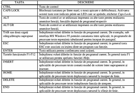 Tastele alfanumerice: literele alfabetului, cifre si simboluri speciale (de exemplu: !"$%^&*+#@)