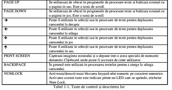 Tastele numerice din partea dreapta: formeaza keypad-ul numeric. Se utilizeaza in programele de calcul, pentru a introduce mai rapid cifrele.
