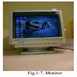 Utilizat pentru vizualizarea informatiilor. Pentru a conecta un monitor la calculator este necesar un cablu special. Alimentarea monitorului cu energie electrica se realizeaza uzual prin cuplarea la calculator prin intermediul unui cablu, oferindu-se astfel si facilitatea de a deconecta monitorul automat la oprirea echipamentului de calcul. Astfel, apasarea butonului POWER al calculatorului controleaza simultan si echipamentul si monitorul.