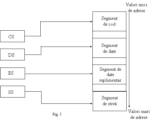 Fiecare program este compus din unul sau mai multe segmente. In fiecare moment al executiei este declarat activ cate un singur segment din fiecare tip. Registru CS (Code Segment), DS (Date Segment), SS(Stack Segment) si ES (Extra Segment) din BIU retin adresele de inceput ale segmentelor active, corespunzator fiecare tip.