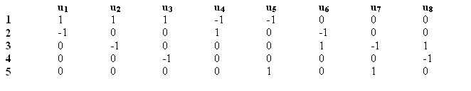 Vom nota arcele asa cum se indica in figura , adica u1=(1,2), u2=(3,1),.., u11=(6,8).