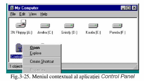 Se observa ca meniul afisat dispune de optiuni diferite fata de cel afisat cand fereastra aplicatiei My Computer era deschisa.