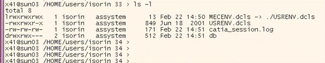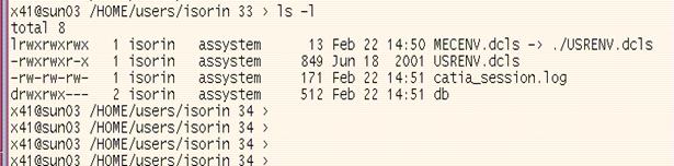Ex: fisierul "USRENV.dcls" poseda drepturile "rwxrwxr-x" adica "r", "w", "x" pentru proprietar (isorin), "r", "w", "x" pentru grup (assystem) si "r","x" pentru altii.
