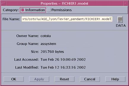 Categoria 'Information' vizualizeaza informatii referitoare la obiectul selectionat (proprietar, grup, marime, ultima data a accesarii si modificarii)
