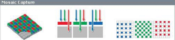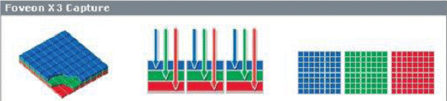 - Foveon a intrat pe piata cu un nou tip de sensor CMOs de imagine in care semnalul de pixelul a lungimilor de unda de culoare albastru, verde si rosu este inregistrat prin inmagazinarea de electroni generati la diferite inaltimi ale corpului de silicon