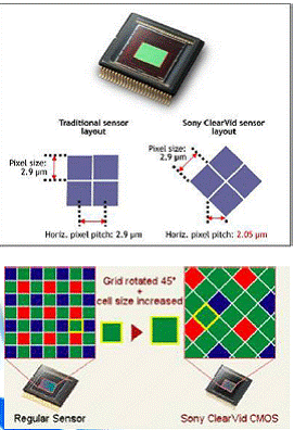Sony ClearVid adopta un aranjament similar, cu senzori foto localizati la unghuri de 45 de grade , unii de ceilalti.