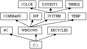 Subdirector al unui director poate fi oricare cu conditia sa existe o relatie de subordonare: COLOR este subdirector al lui SYSTEM dar si al lui WINDOWS si al directorului radacina.