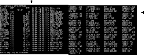 Ex.: DIR C:WINDOWS/P afiseaza continutul directorului WINDOWS asteptând apasarea unei taste la umplerea ecranului.