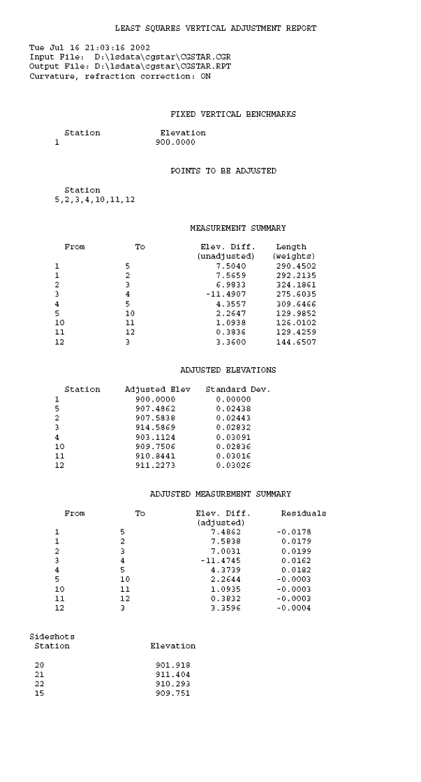 Aceasta comanda creeaza un raport privind diferenta de cote dintre puncte si design cote [[ o cota de design ]], care poate fi definita de alte puncte din fisierul curent de coordonate sau de puncte din alt fisier de coordonate.