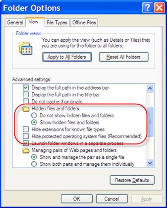 Pentru a face vizibil acest fisier trebuie sa aveti activata optiunea 'Show hidden files and folders' (valabil in Windows XP, Vista & Windows 7),
