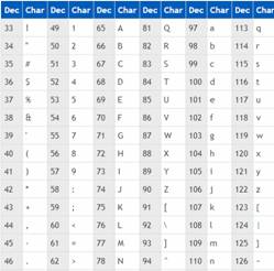 valorile pe care le au asociate conform tabelei standardului ASCII. Caracterele