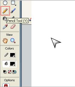 Acum va trebui sa desenzi cursorul pe scena. Poti utiliza unealta creion sau alte unelte de desenat. Este de recomandat sa faci cursorul indreptat catre stanga sus.
