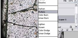 Pasul 3. Deschideti si imaginea du piatra, si copiati-o pe fereastra cu fata. Setati Blend Mode la Multiply.