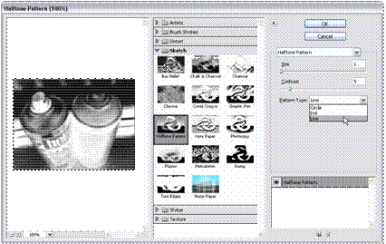 Halftone Pattern prin accesarea Filter > Sketch > Halftone pattern.