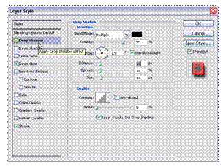 Pasul 4. Acum accesati Blending Options si folositi aceste setari pentru Drop Shadow: