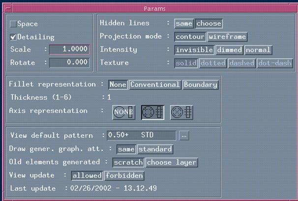 Permite modificarea numelui vederi curente, afisarea scarii si a rotirii vederii.
