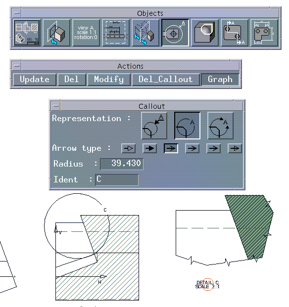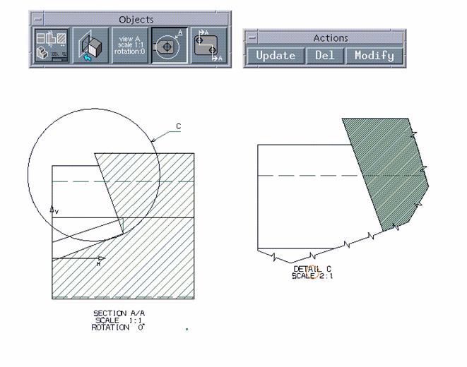 Butonul 6 din fereastra Objects permite modificarea unei vederi, indiferent de tipul acesteia in sensul de a afisa zona de interes. Pentru o vedere detail se poate modifica zona de interes.