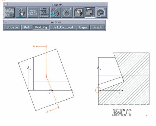 Permite modificarea elementelor asociate vederilor. Se poate sterge sectiunea, modifica pozitia sagetilor de la traseul de sectionare, se poate sterge traseul de sectionare. Se poate modifica reprezentarea tipului sagetii, punctul de ancorare, lungimea si se poate alege o alta litera.