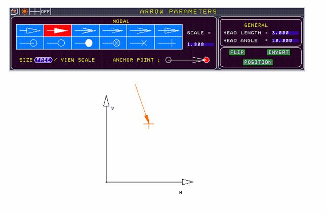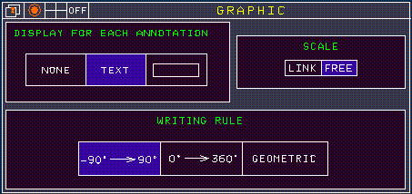 Butonul GRAPH permite modificarea razei cercului, a modului de afisare a notei, a valorii razei, a literei (IDENT), a sagetii.