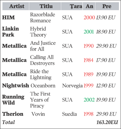 preturilor cd-urilor din catalog. Pentru aceasta adaugam inainte de sfarsitul