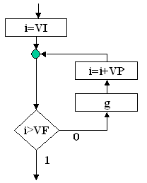 unde <var> este o variabila (numita contorul ciclului) de acelasi tip (exceptie tipul real) cu tipul expresiile simple <exp_inf>, <exp_sup> ce reprezinta valori (marginea inferioara, respectiv marginea superioara) dintr-o multime de valori ordonate ce pot fi generate prin intermediul valorii <pas> (numit pasul de generare- pasul ciclului), iar <corp> este un modul de instructiuni executabile, inclusiv for.