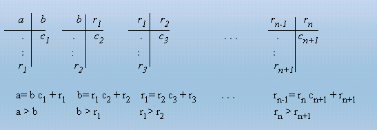 In concluzie, trebuie realizat un proces de calcul care sa execute operatiile din sirul de impartiri succesive, procesul se va termina atunci cand la un moment dat restul impartirii va fi 0.
