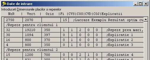 o Doar pentru ultima placa: la optimizare se folosesc placi mari, dar pentru reperele de pe ultima placa se reface debitarea folosindu-se de resturile din stoc.