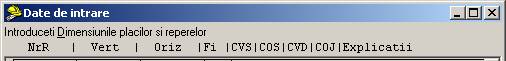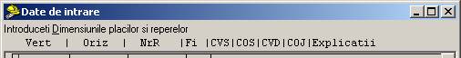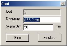 Codul va fi introdus in datele de intrare; supra-dimensiunea va fi folosita pentru a preciza pierderea de cant a masinii de cantuit, iar denumirea va apare, in Rezultate, in lista cu metrii liniari din fiecare tip de cant.