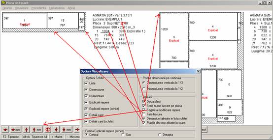 Pentru a alege unul din aceste moduri, intrati in meniul "File->Optiuni", bifati sau debifati comanda "Dimensiuni, numar repere", marcata cu 2 in Imaginea