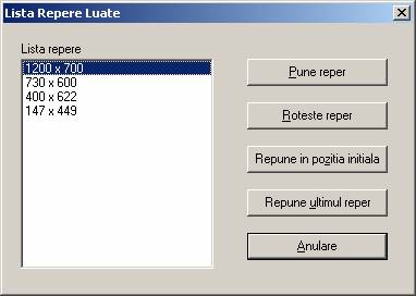luarea, reasezarea si mutare de repere de pe o placa pe alta sau pe aceeasi placa a unui sau mai multor repere: luarea reperelor selectate se face cu tasta "i" sau butonul "ia Placi". Aceste repere se pastreaza intr-o stiva pe care puteti sa o vizualizati daca apasati pe butonul "Lista".