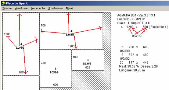 La o debitare curenta se va preciza tipul de material utilizat, existand mai multe posiblitati cum sa fie folosite aceste resturi : doar pentru ultima placa, doar resturi din stoc, in oridne crescatoare a suprafetei resturilor si altele.