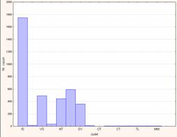 Figura 8.2.a: Histograma judetelor de Figura 8.2.b: Histograma corespunzatoare
