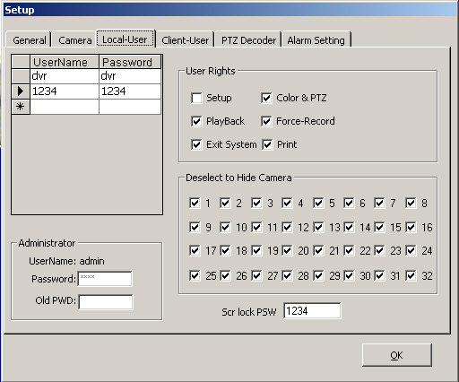 Password: default is: dvr