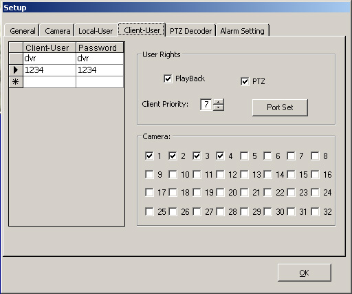 User Name: default is: dvr