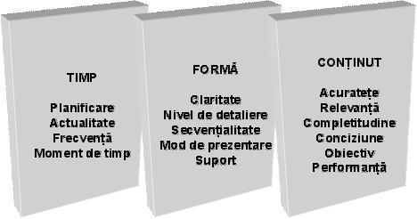 Planificare: informatia trebuie sa fie furnizata atunci cand este necesara, la momentul oportun, cu promptitudine;